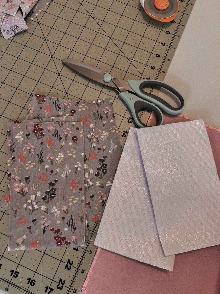 - Separate the materials out into two groups. In each group, you will need 1 of your main fabric pieces, 1 of your lining fabric pieces, and 1 of your insulation pieces.