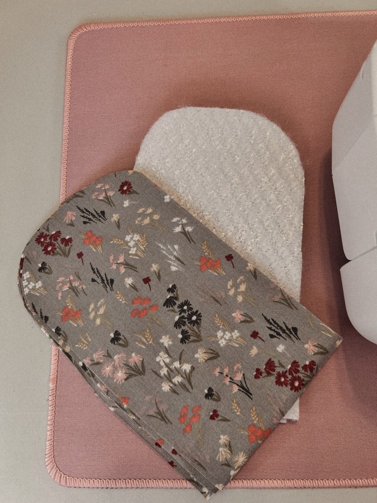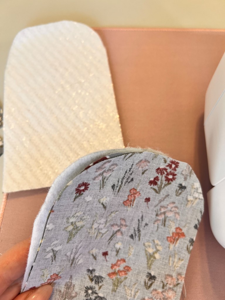 - Place the two fabric pieces on top of your insulation piece, placing your main fabric up against the insulation.