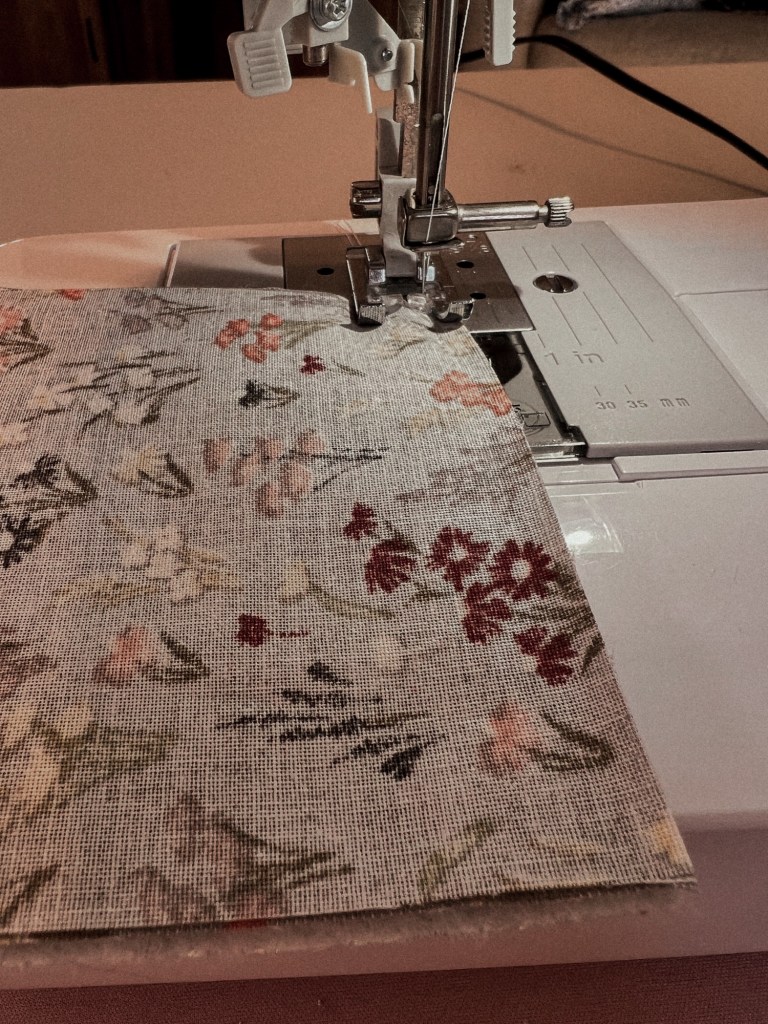 - Sew a basting stitch along the straight end of the fabric stack. Make sure to back stitch a bit at the beginning and end.