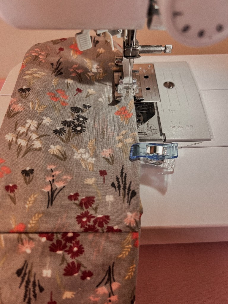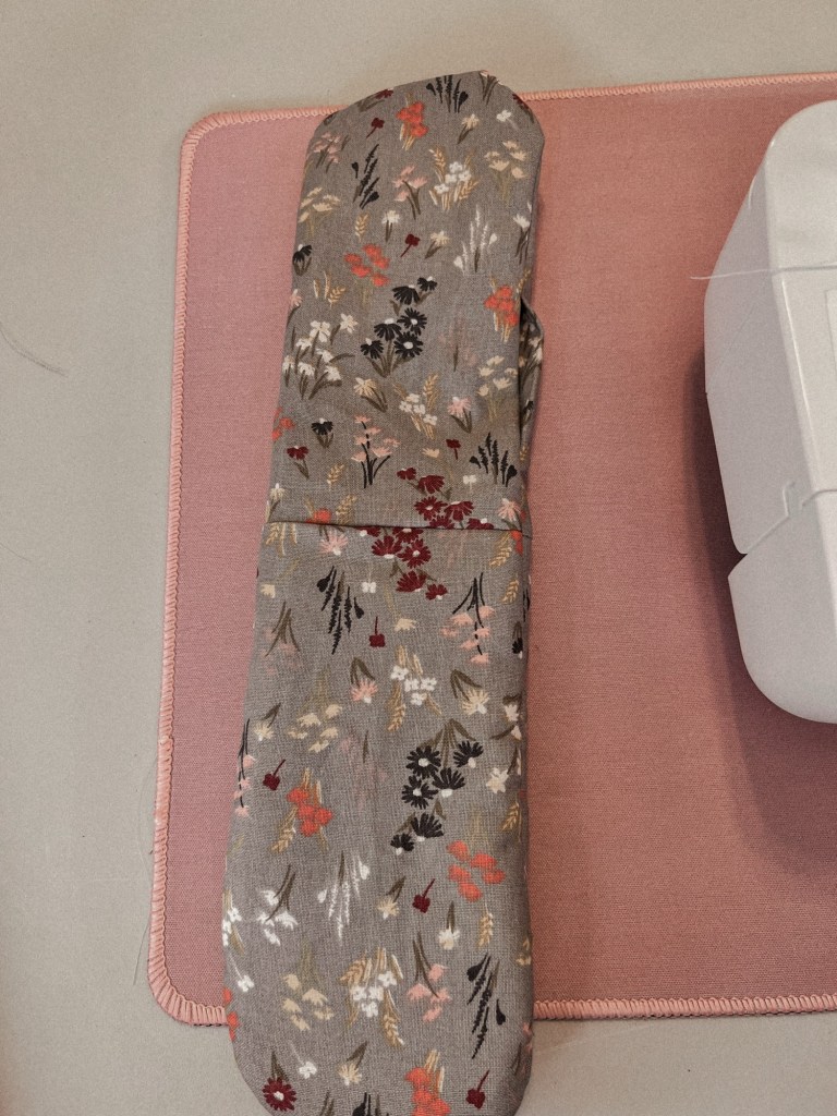 - Use the area you did not sew to turn the entire project inside out. I found it easiest to start feeding the insulated side through the hole first.